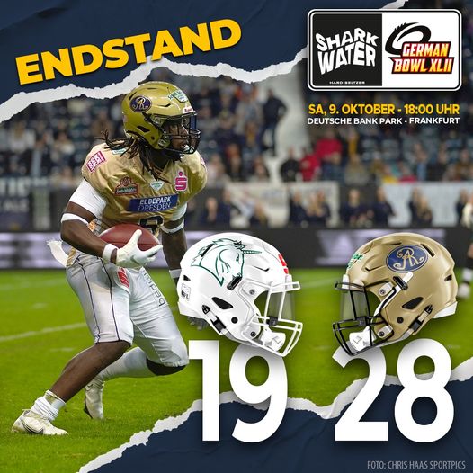 In einem spannenden und sehr unterhaltsamen Endspiel der Sharkwater German Football League besiegen die Dresden Monarchs die Schwäbisch Hall Unicorns mit 28:19. Zur Halbzeit hatten die Unicorns noch die Nase mit 12:7 vorne, die vielen Verletzten und ein immer stärker aufkommender Gegner aus Sachsen ließen die Haller aber ins Hintertreffen geraten. Die Monarchs verließen sich nicht nur auf ihr starkes Passspiel, sondern hatten an diesem Abend auch große Raumgewinne durch ihr Laufspiel. Am Ende gingen sie als verdienter Sieger vom Platz.