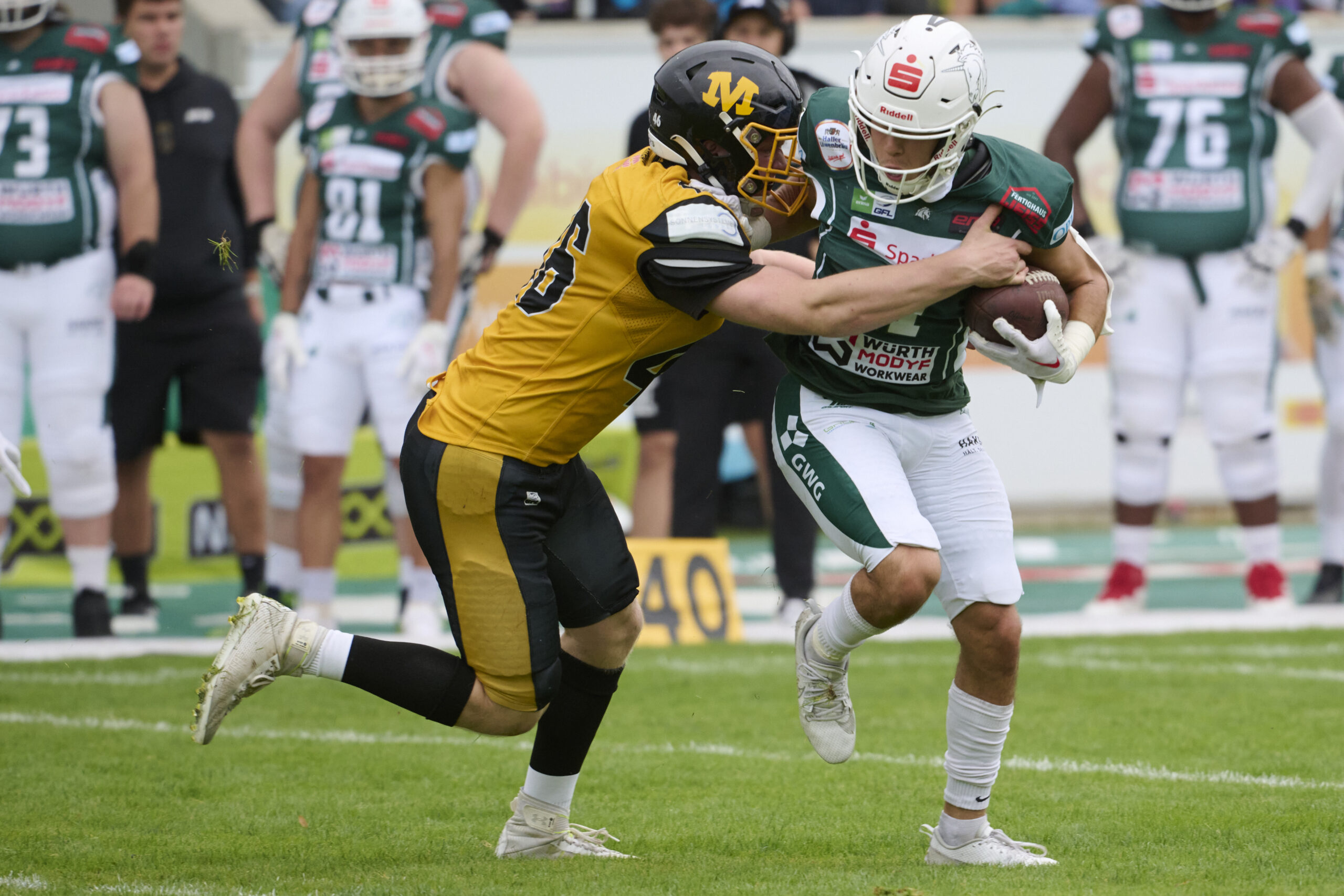 Auch in Schwäbisch Hall konnten die Munich Cowboys keine Punkte holen. Dabei zeigten die Münchener beim 13:36 eine ansprechende Leistung, hatten aber gegen den neuen Tabellenführer der ERIMA German Football League Gruppe Süd das Nachsehen.